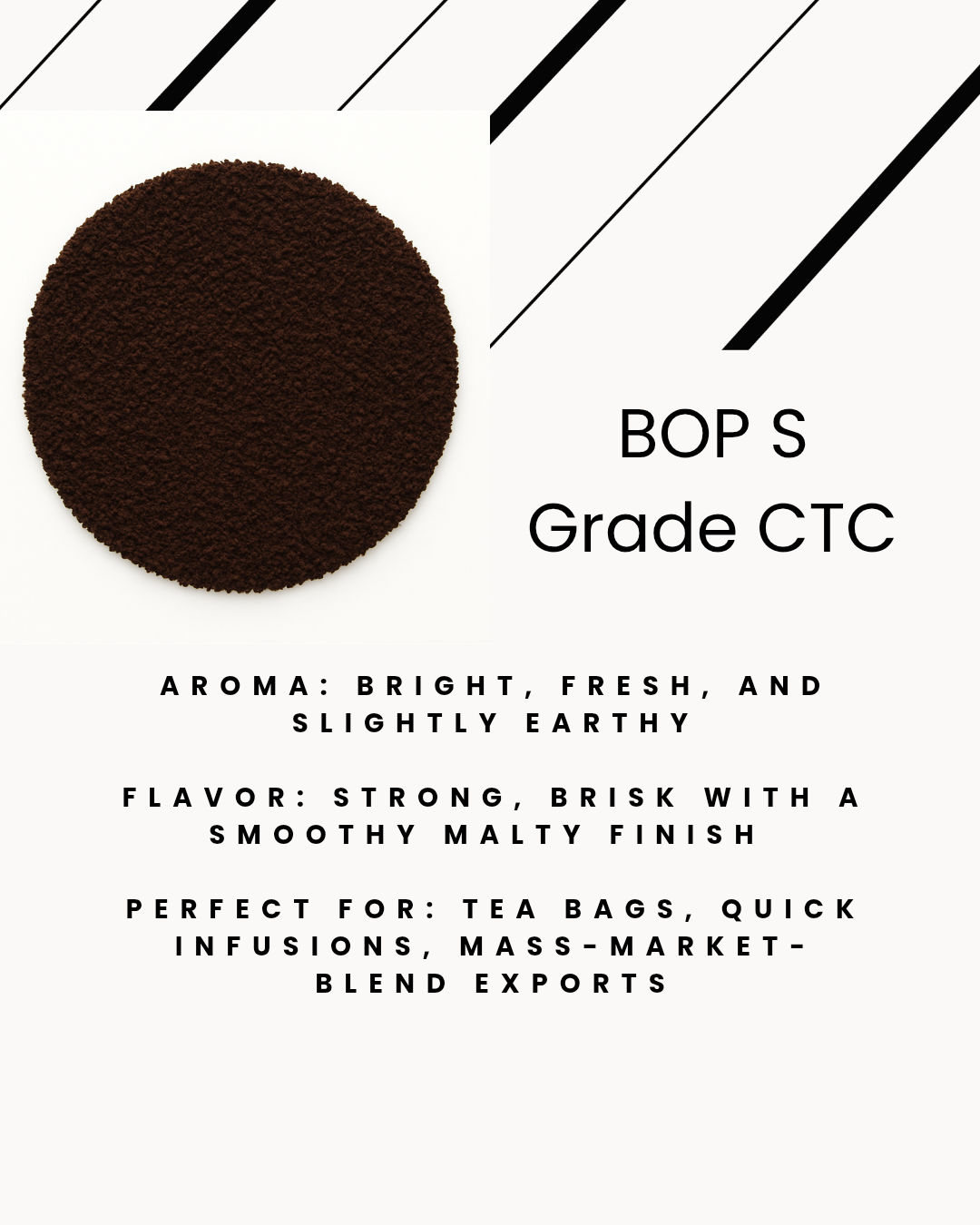 Is a finer CTC variant known for producing a bright color, quick infusion, and a strong cup. It’s widely used in tea bags and blends where bold flavor and rich liquor are essential.