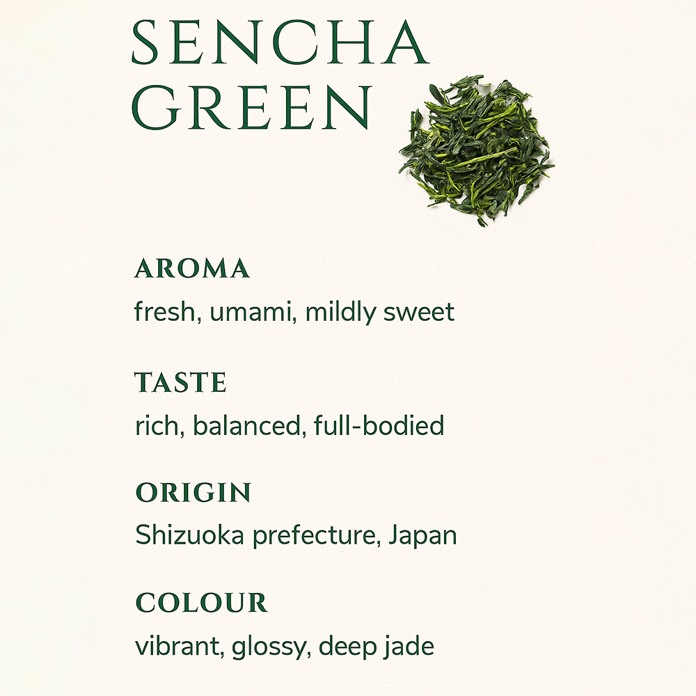 Clean, smooth, and revitalizing, Sencha supports mind and body wellness and is a popular choice among tea drinkers seeking clarity and energy without the jitters.